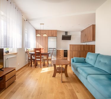 To wyjątkowe, 3-pokojowe mieszkanie o powierzchni 72 m2 w spokojnej części wrocławskich Złotnik to idealne połączenie miejskiej wygody i wysokiego standardu. Położone na 1. piętrze w nowoczesnym, niskim bloku z 2019 roku przy ul. Kościańskiej 36, zapewnia funkcjonalność życia w nowym budownictwie z windą i osiedlowym ogrzewaniem. Dzięki dwustronnej, narożnej ekspozycji (wschód i południe), wnętrza są doświetlone naturalnym światłem przez cały dzień, co gwarantuje ciepły i przytulny klimat